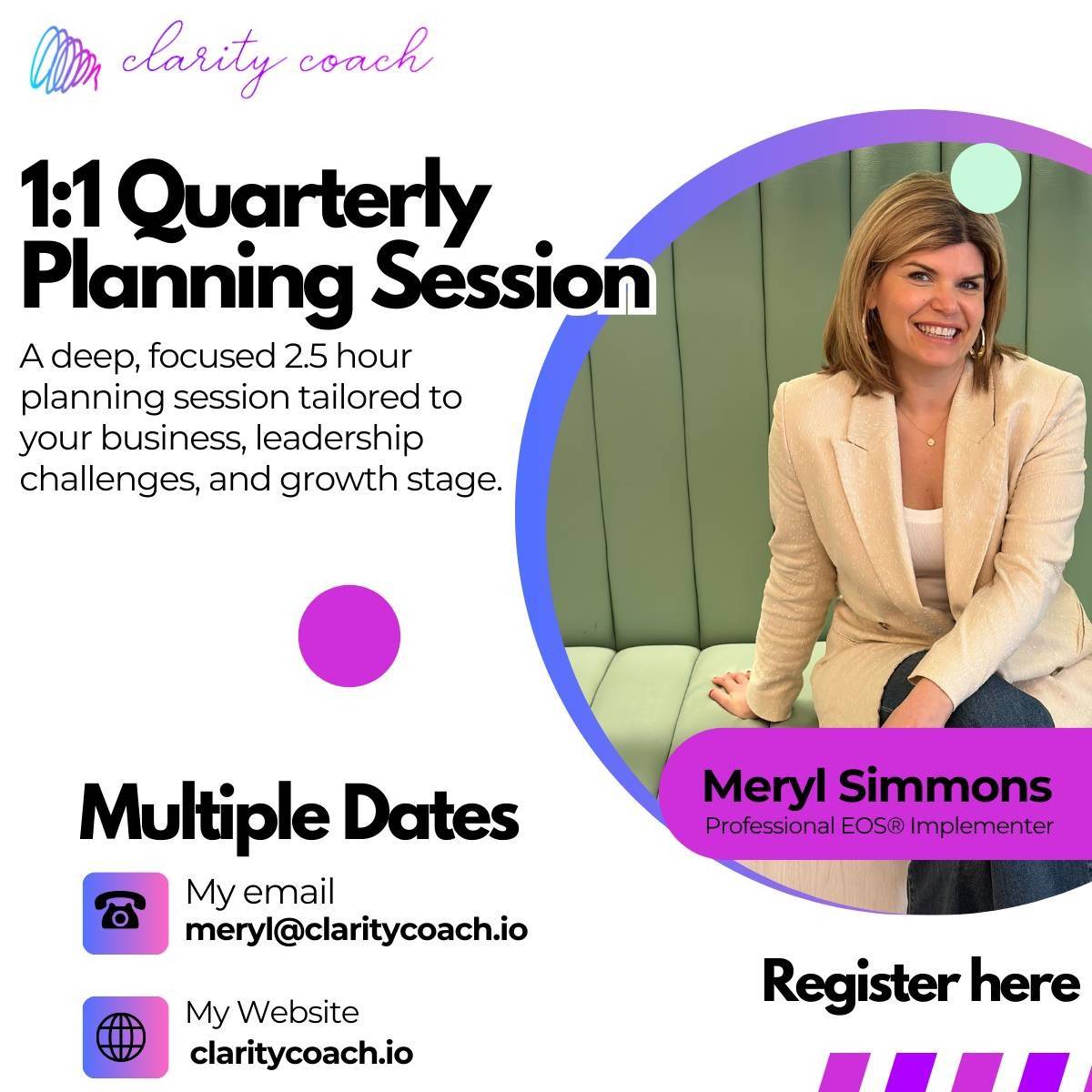 Ideal for: Owners who want clarity, focus, and a practical plan they can execute immediately with 1:1 private coaching.